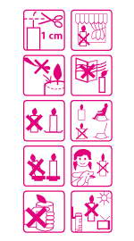 Svíčky vyrobené před tímto datem mají tyto výstrahy, upozornění a doporučení v textové formě na bookletu, který je na každé u nás vyrobené svíčce.
