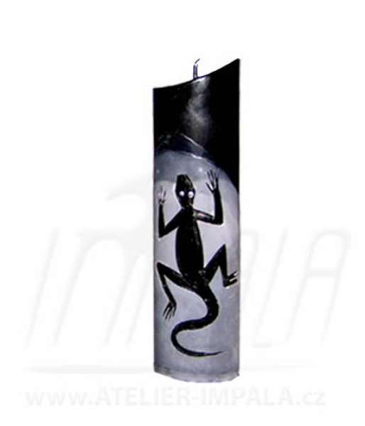 Svíčky Ryté s motivem Salamandra v černobílé barevné kombinaci. Kvalitní parafinová svíce, ručně odlévaná, máčená ve speciálních polevách s ručně vyrývaným motivem Salamandra.